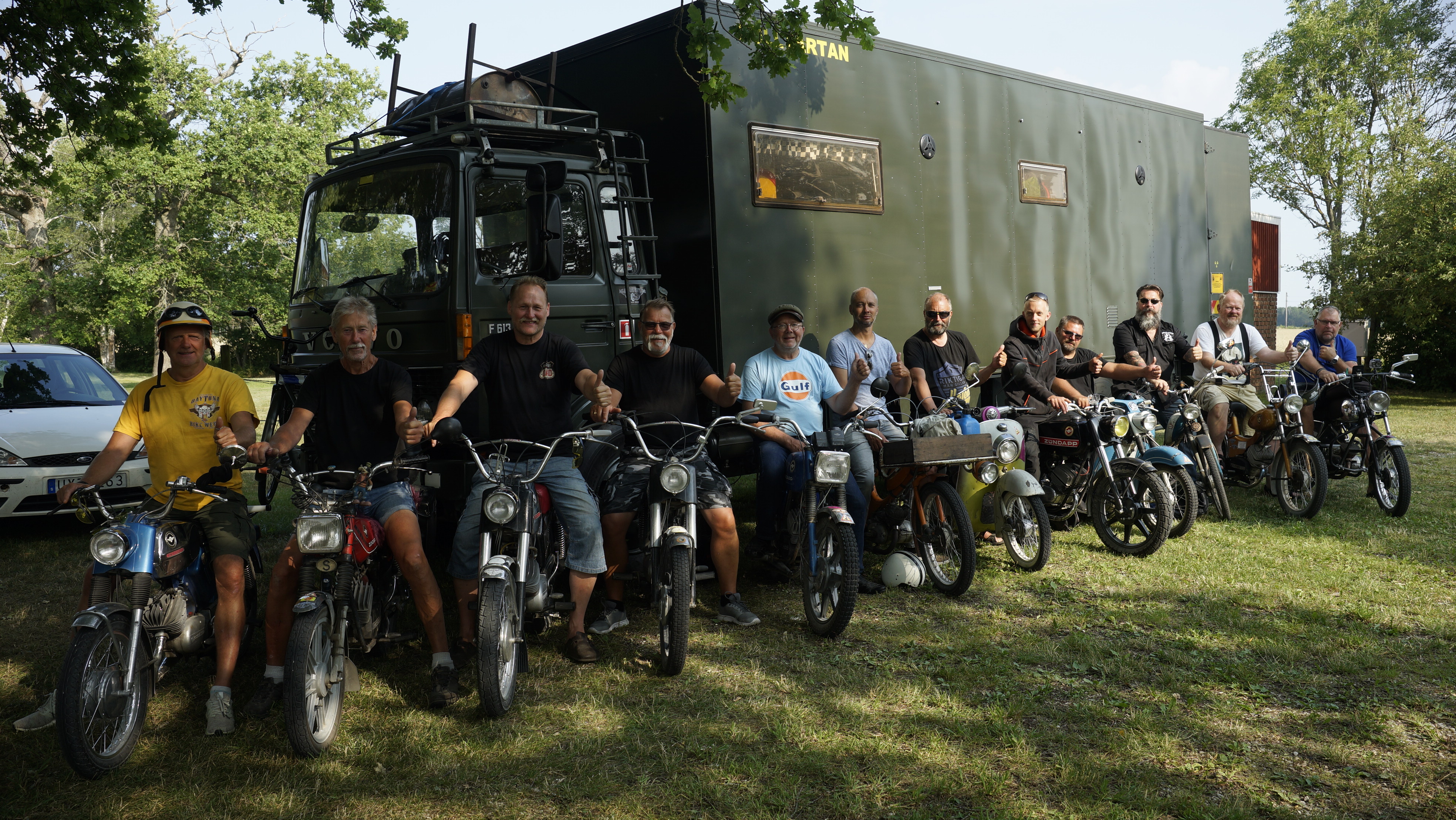 I samband med att vi körde årets Gotland Grand Moppe Tour så avslutade vi den sista kvällen med att tävla på moppe. Den klassiska ”rycka väskan av kärringen” blev ett bra avslut sista kvällen på ön. Vi bodde sista natten hemma hos Doc i Hemse och bjöds på en skön grillfest med tillhörande ”lekar”. Doc hade, utan de övrigas vetskap, fixat en bana med två ”kärringar” att rycka väskorna ifrån och det var meningen att allt skulle köras på hans gröna REX, vilket de flesta gjorde, men några valde egen moppe. Från start till mål med två väskryckningar, så togs det tid för att kora en vinnare. Här är tidresultaten för de 11 som vågade köra: