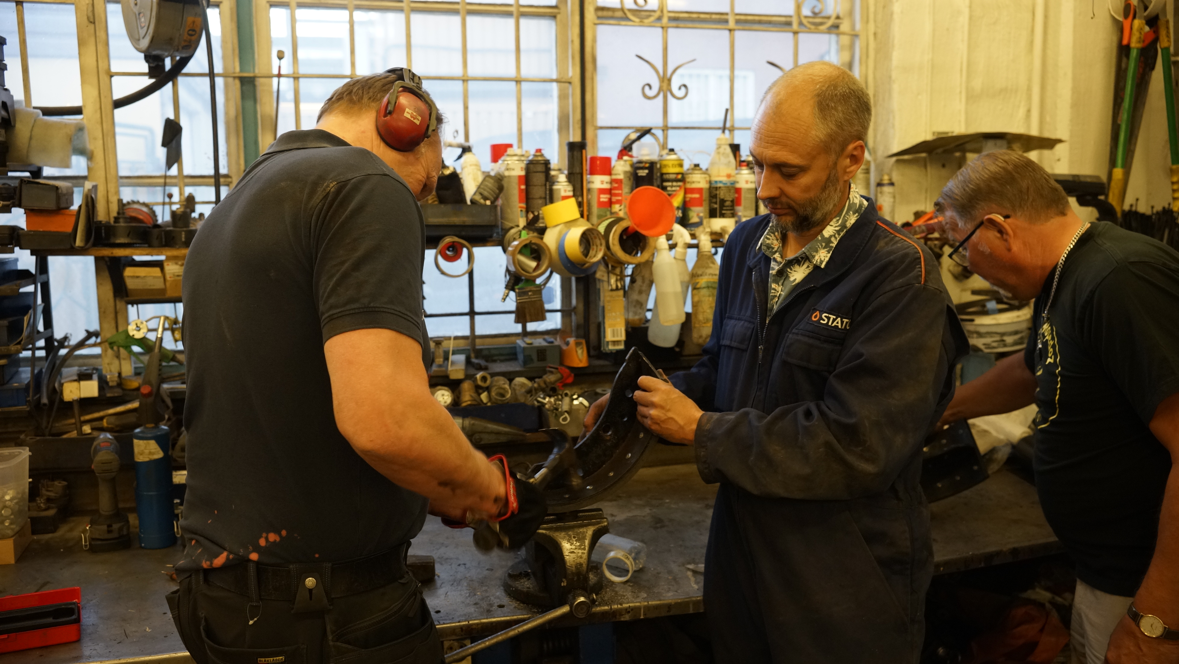TM Meck 200611 publ (9) Publicerat 14 juni, 2020 kl. 3936 × 2216 i Vi skruvar bromsar, igen…. Tengis och Johan snyggar till nitarna