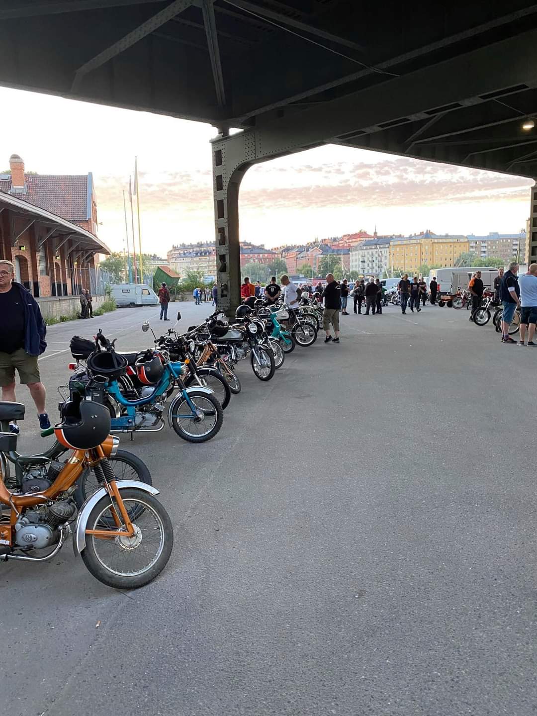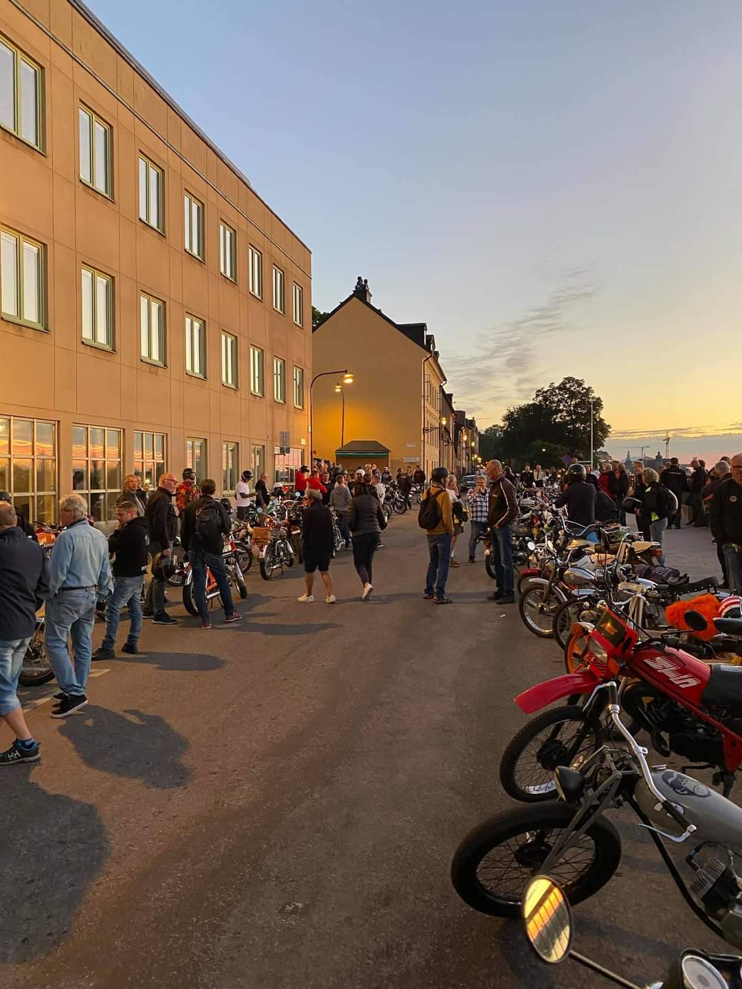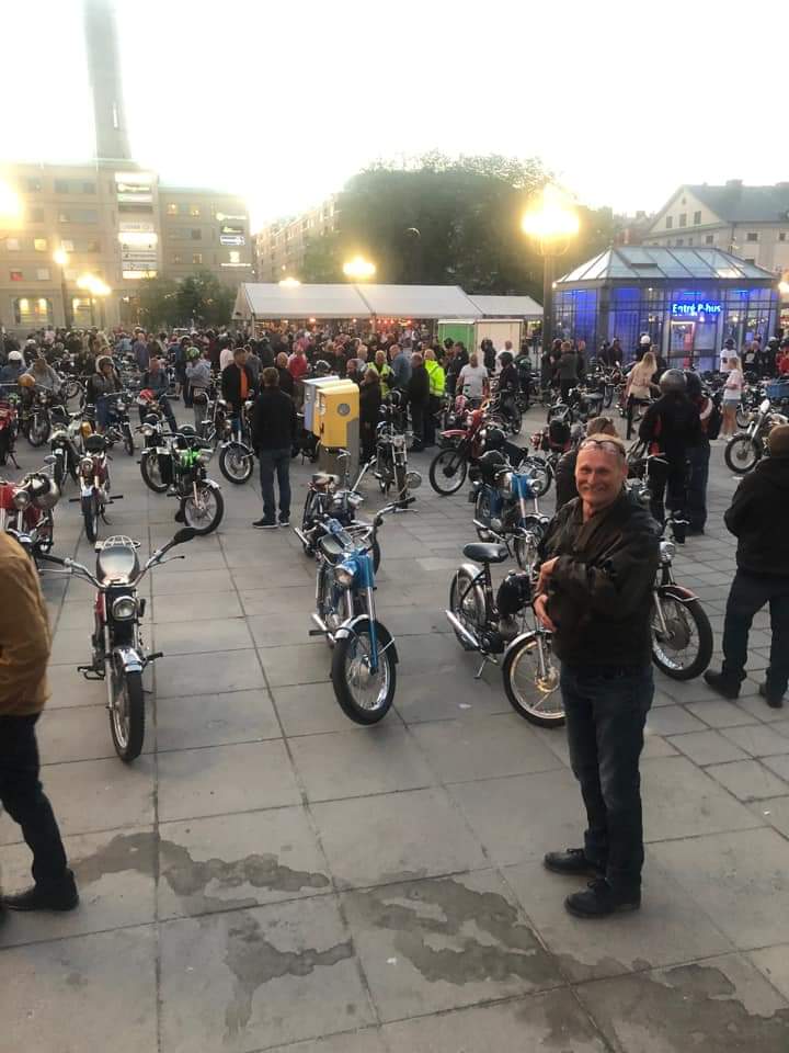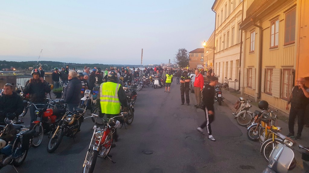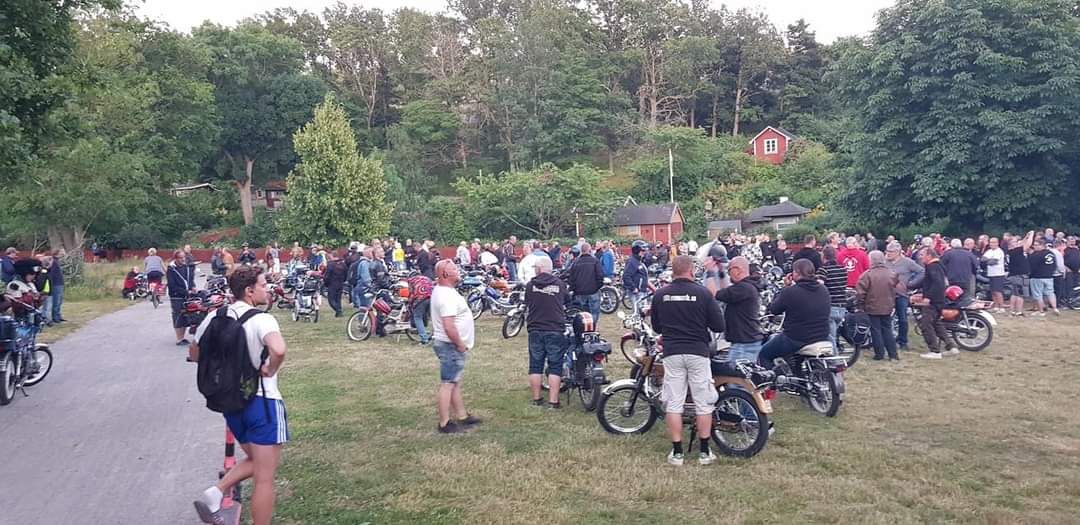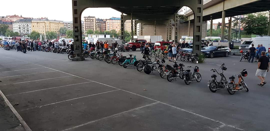 Trots att Midnattsruset i år var en runda där vi i Tårtan Mopedoz inte arrangerade på samma sätt som tidigare år, så var den nattliga rundan även i år välbesökt. Vi valde ju i år att arrangera ett fritt och öppet Midnattsrus på grund av de Covidregler som gällde när vi planerade rundan. Eftersom det då var osäkert vad myndigheterna skulle komma fram till så beslutade vi oss för att arrangera en öppen variant där alla var välkomna att delta på eget bevåg och där vi via nätet delade ut karta, info och beskrivning som den skulle ha genomförts om vi kört på som vanligt, en variant som visade sig lyckad! Det var svårt att räkna in hur många som dök upp och körde, men omkring 22.00 så lämnade minst 225 moppar parkeringen under Liljeholmsbron och tog sig in genom den varma sommarnatten. Förvånande många utomsocknes kom och körde, vilket alltid är trevligt. I mopperöran hittade vi bland annat folk från Borlänge, Dalsland, Norrköping, Oxelösund, Skövde, Västerås, Gävle m.fl och naturligtvis klubbarna från Stockholms närförorter.