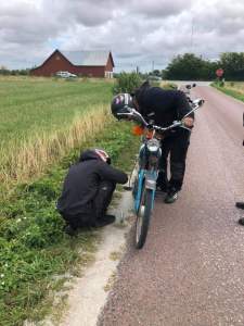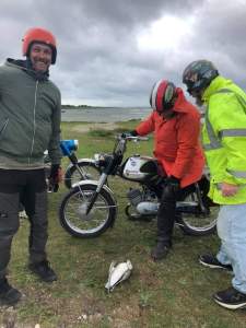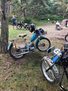 För 19:de året på raken så drog vi iväg på det vi kallar GGMT; Gotland Grand Moppe Tour. Från måndagen den 26/7 till måndag 2/8 så moppades och campade vi oss runt på ön. Även i år så följde vår följebil Rulltårtan med oss för att sköta transporten av vårt bagage och finnas framme på plats när det är dax för nästa lägerplats. Vi slår alltid läger på någon undanskymd plats vid haven och vet inte från dag till dag vart vi hamnar och hur vi åker, tiden då vi körde efter en roadbook är förbi sedan länge och nu kör vi dit näsan pekar. Hela resan handlar om att koppla av, åka veteranmoppe, en kväll med pilsner på stranden och i bästa fall även en brasa. Vi käkar antingen efter vägen på något hak, eller i lägret på morgon och kvällar. I vår följebil Rulltårtan så finns allt vi behöver; kylskåp, vatten, verkstad, laddstation för mobiler, solcell, ljudlig stereo, filmduk och alldeles för mycket bekvämlighet, men ska man koppla av så måste allt gå att lösa enkelt. I år så består gruppen deltagare enbart av klubbens medlemmar, men det händer att vi tar med inbjudna gäster.