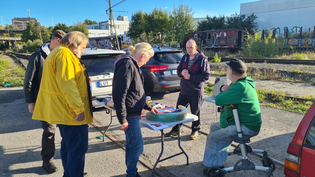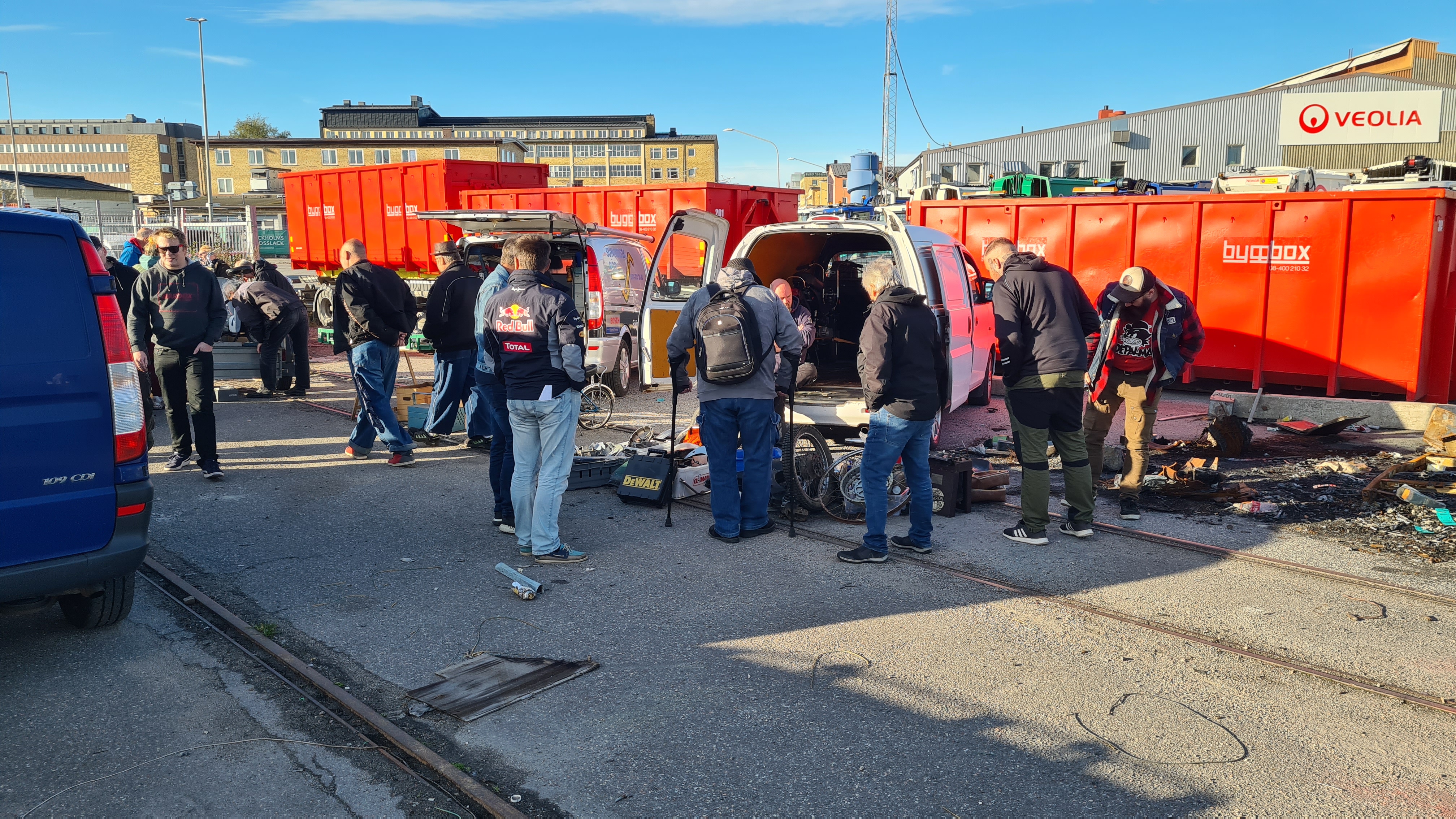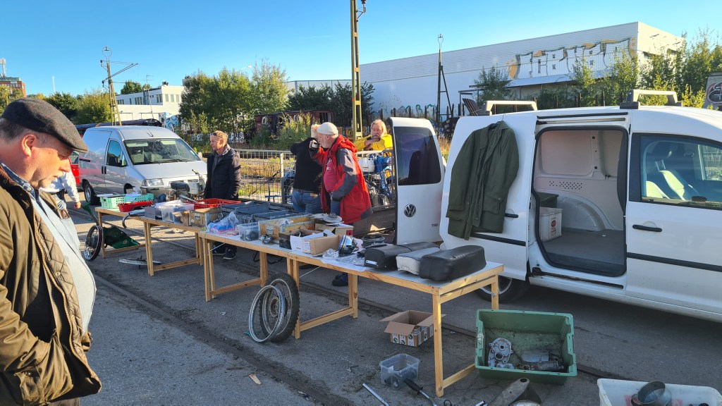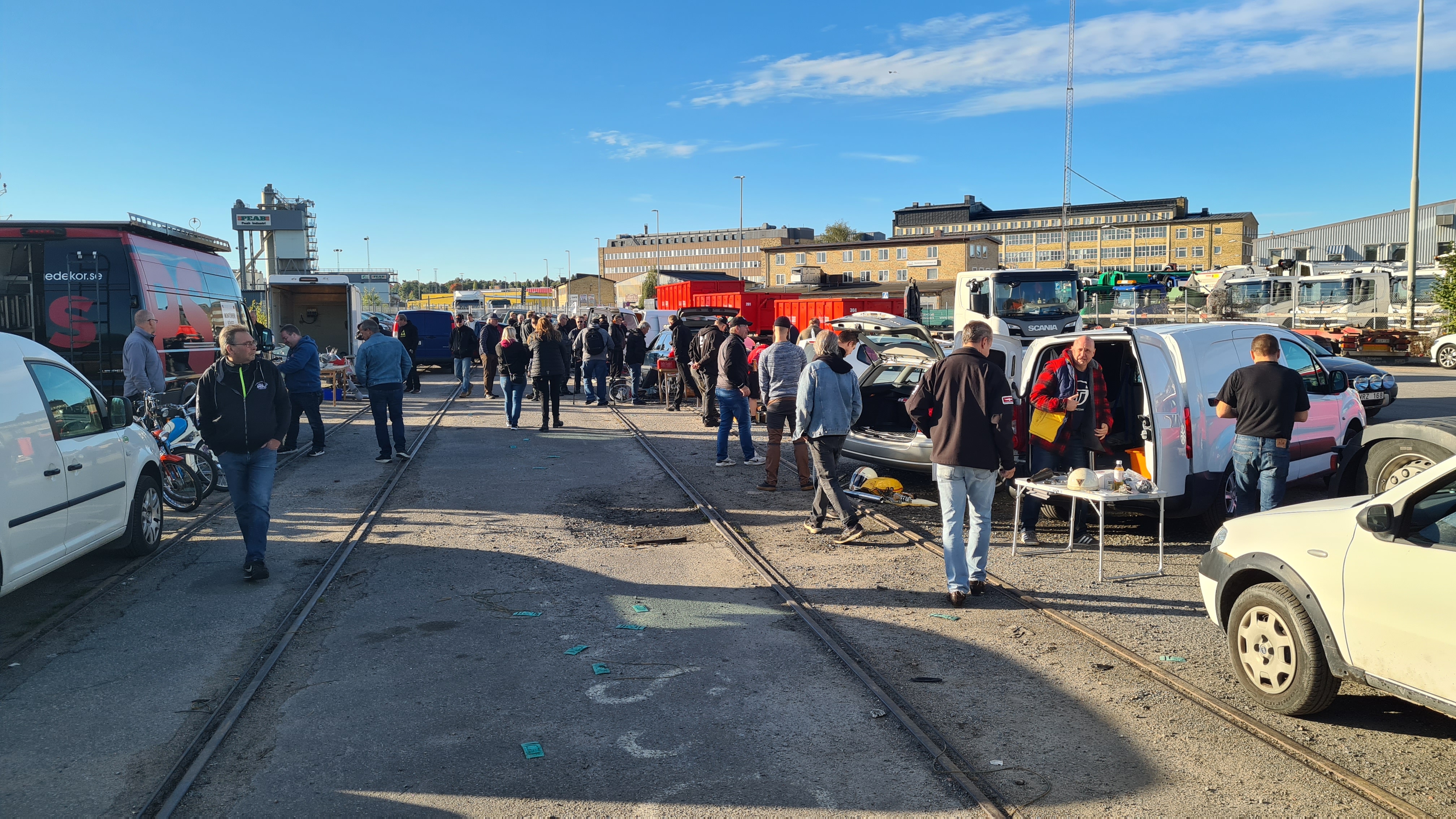 I strålande solsken så arrangerade vi för första gången på länge den i år rätt så välbesökta Moppisen. I år så höll vi Moppisen på ett annat ställe än under Liljeholmsbron, efter några års bråkande med ett p-bolag. Istället valde vi Västberga Industriområde där vi känner oss hemma och på ett utrymme som tidigare var SJ´s Frilastområde och som idag används sporadiskt för omlastningar. Vi gjorde som vi brukar; vi sätter en plats, ett datum och en tid, det är allt, resten ordnar de som vill sälja eller handla och de placerar sig där de vill.