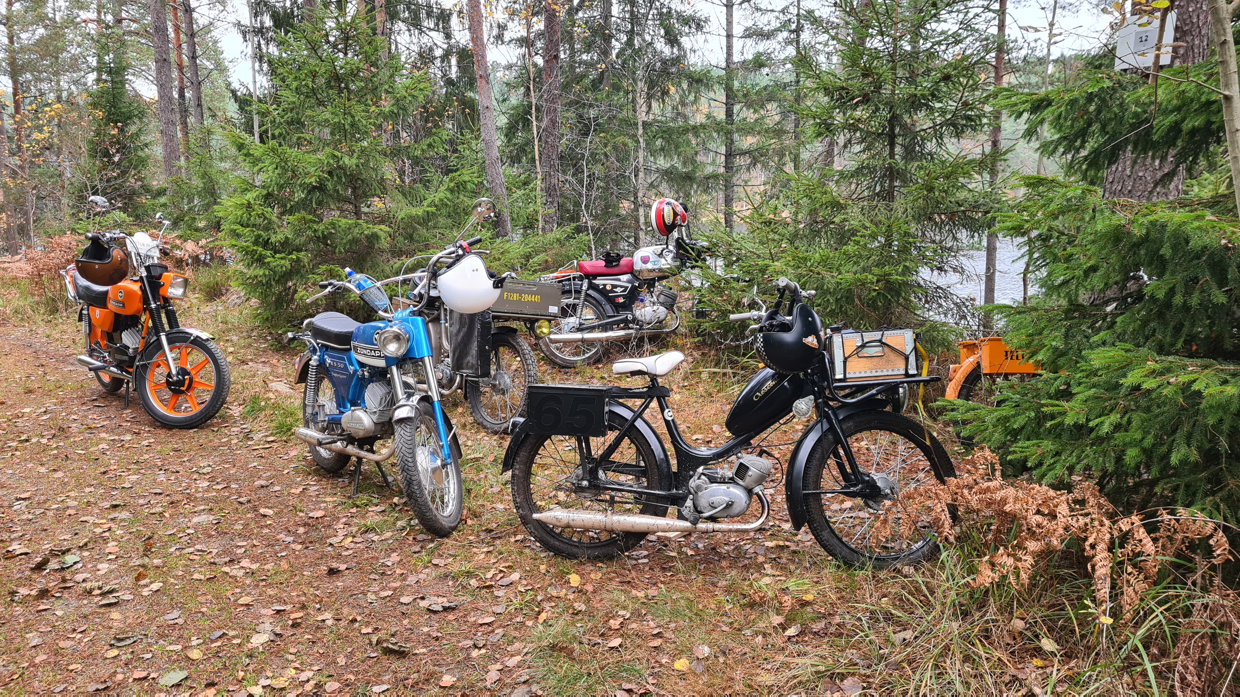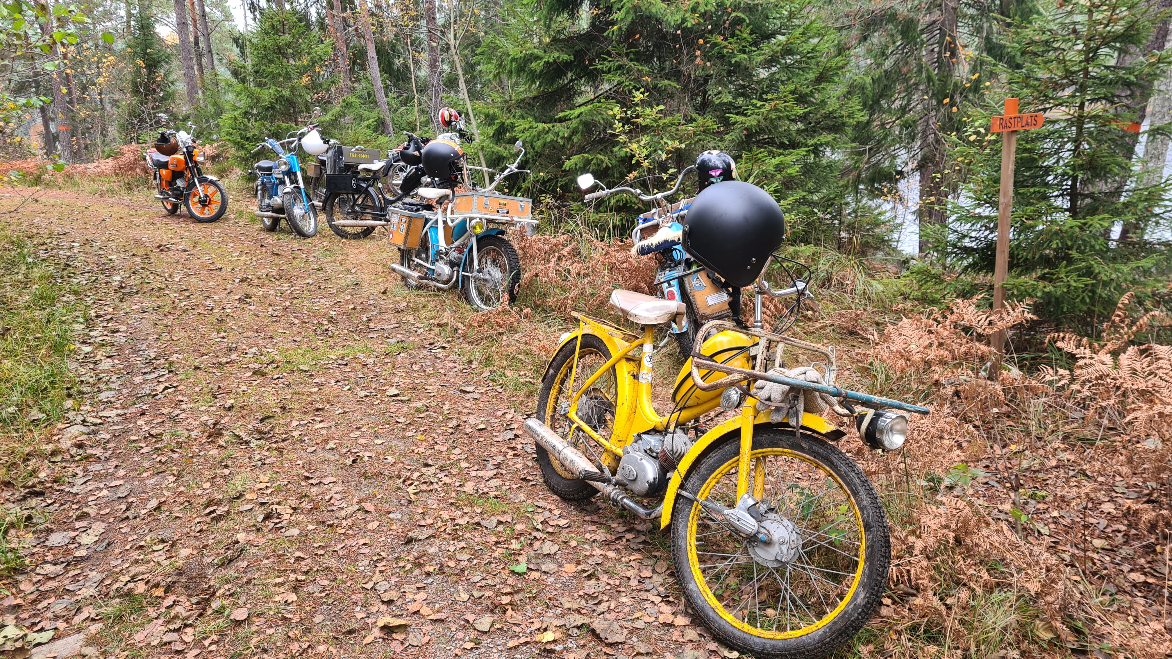 Varje höst så drar vi i Tårtan Mopedoz ut på en grusrunda med korvgrillning någonstans i skogen och det gjorde vi även i år. Vädret var lite grått den här söndagen men trots det så blev vi tio som äntrade mopparna för en nästan fem mil höstrunda söder om huvudstaden.