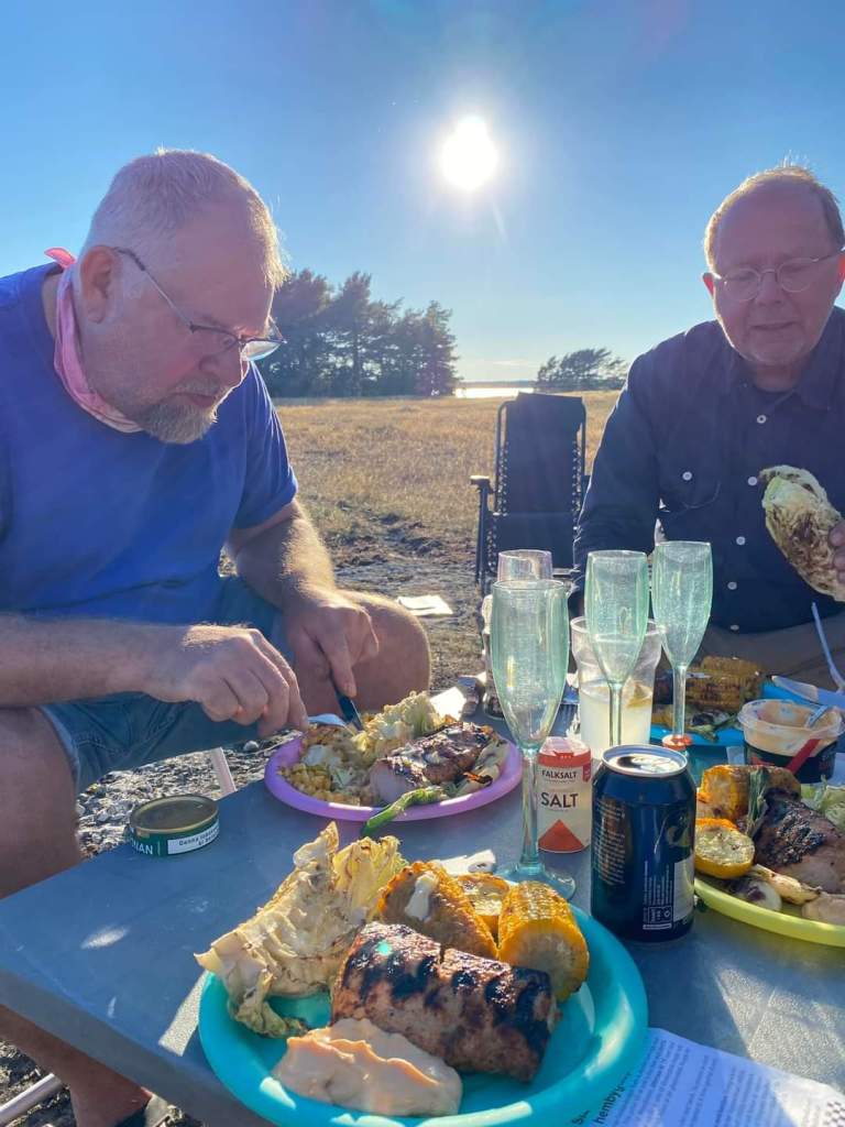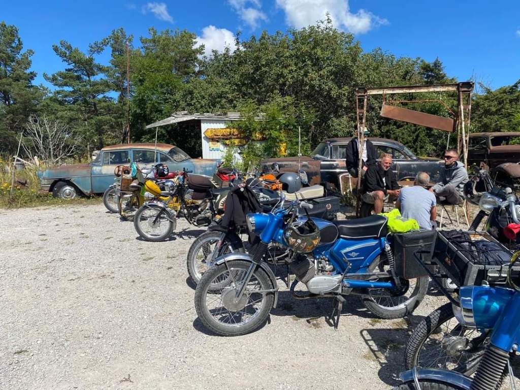 …… Dag ett gick från Stockholm till Nynäshamn, sen från Visby och rakt över ön till Herrvik där vi stannade två dagar. Sen gick rundan norrut till Bläse och sen mot Fårösund och Fårö. Däremellan så kördes det på Gotland Ring som nu fått den tredje och sista etappen öppnad, så det blev hela banan den här gången, vi har ju kört där tidigare. På Fårö så slog vi läger på vår vanliga plats på södra delen och stannade ett par dagar med mopperundor runt hela ön. Sen så fortsatte resan tillbaka till Gotland (Fårö är inte Gotland har vi fått lära oss) och till marknaden i Fårösund. Sen blev det vidare mot Lickershamn och en del andra ställen innan vi styrde mot Visby och båten hem till vardagen. Det blev naturligtvis en del moppemeckande som sig bör, dock inga punkor, vilket är ovanligt nu för tiden och som var standard förr. Vår trogna följebil Rulltårtan skötte sig bra som vanligt och är en nödvändighet för vår bekvämlighet numera. Det finns inga sår att slicka i år och vi har redan börjat planera GGMT 2023 😉
