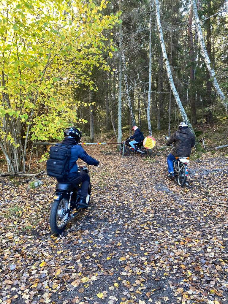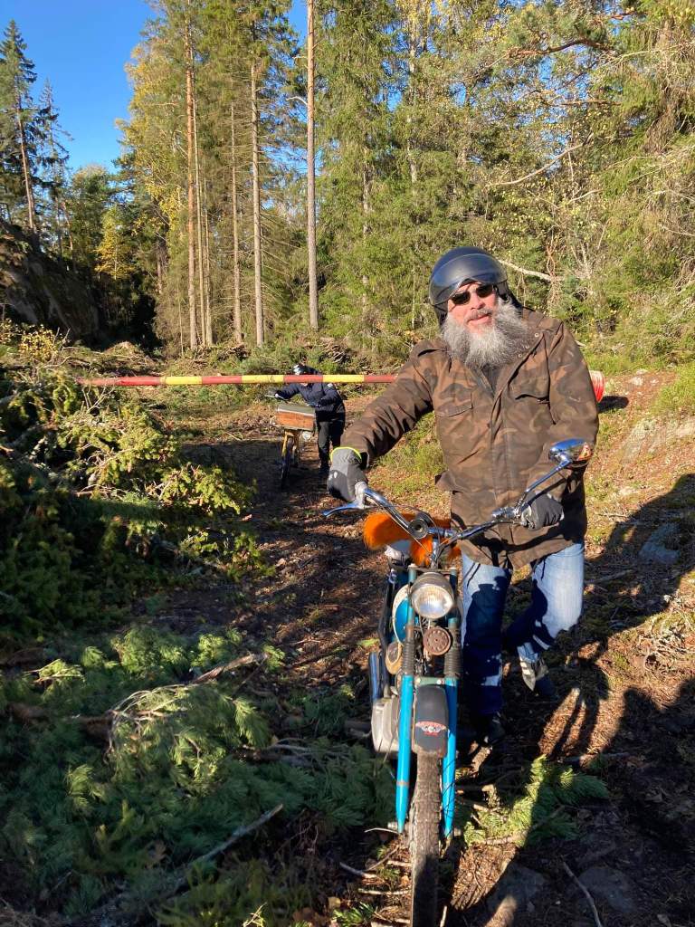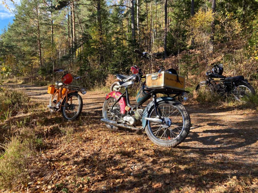 En gammal tradition i Tårtan Mopedoz är att vi i oktober kör en intern mopperunda med grillning efter vägen. Målsättningen är att få köra på små skitiga grusvägar, en del i terrängen och slutligen stanna till och starta en brasa på vilken korv grillas. Sen lite fika och allmänt moppeljug innan vidare färd som slutar där vi startat. Även det här året bjöd hösten på strålande väder och skön åkning, så nu är det avklarat och vi väntar in snön.