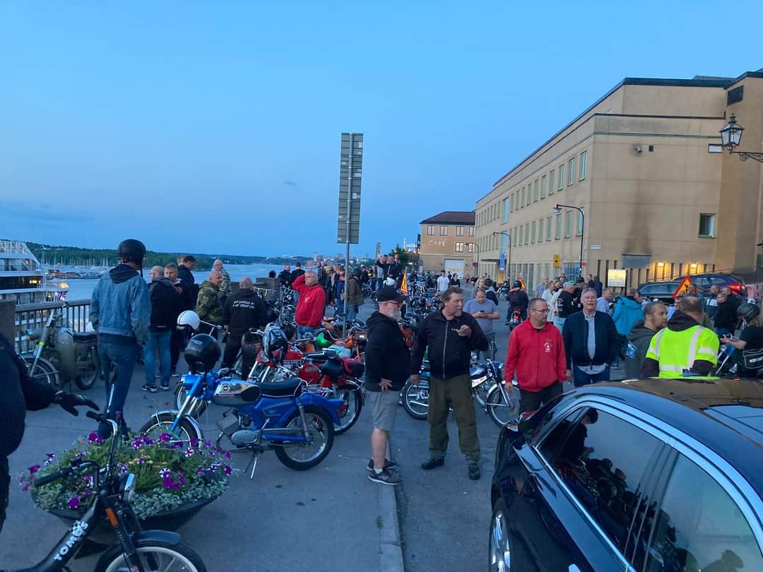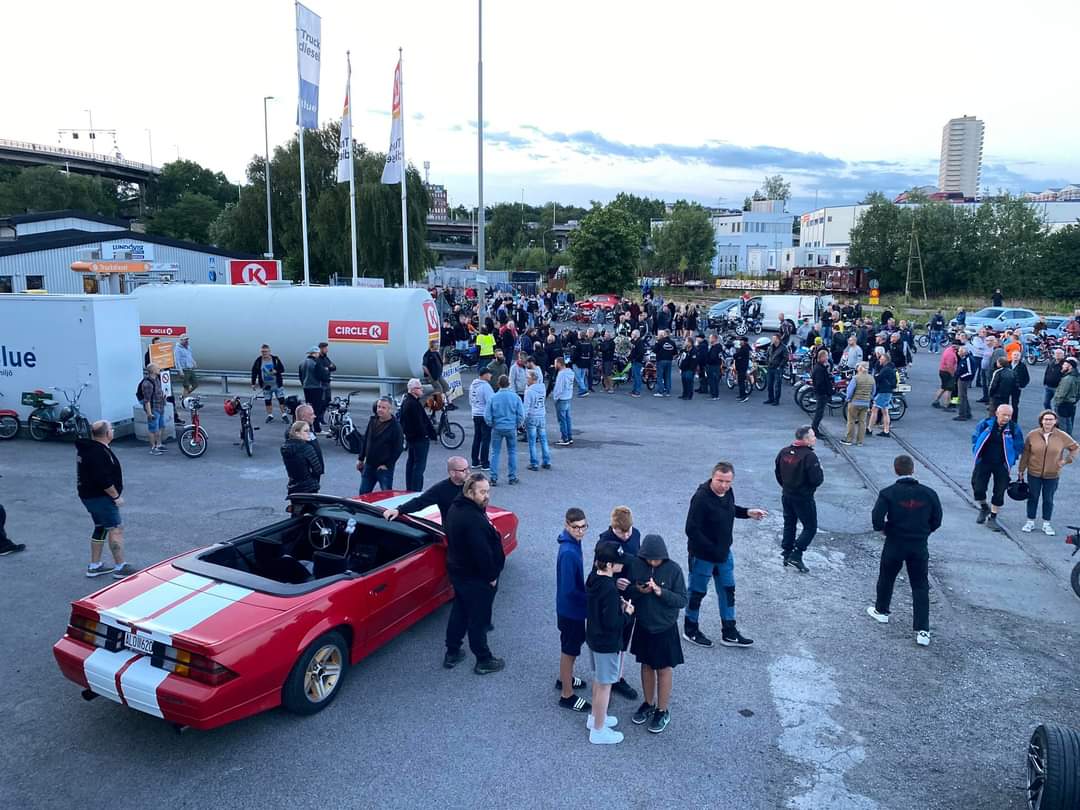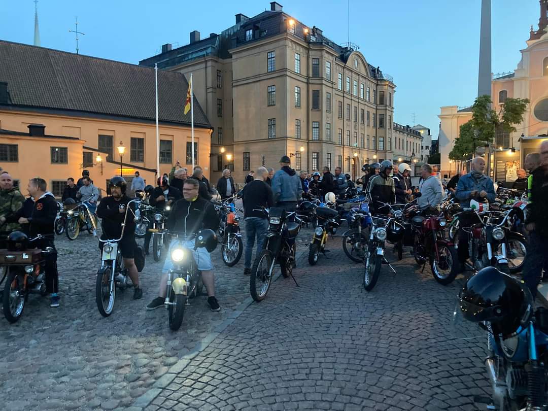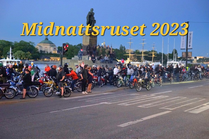 Ja inte sjutton hade vi ens drömt om att vi skulle knäcka tidigare års deltagande i Midnattsruset. Hur vi än räknade och räknade så får vi fram 522 st på moped, den stora delen kom till starten i Västberga men efter vägen anslöt sig fler, så vi får hålla siffran lite mellan tummen och pekfingret, men hur som helst så är det omkring 200 fler än 2022. Det är ju en utmaning att lotsa en sån här skara genom huvudstaden mitt i natten och det kan omöjligt gå att hålla ihop hela skaran under hela rundan, som i år blev både längre och tog över tre timmar. Vissa kom lite på avvägar men var lika glada för det. Korv och fika försäljningen gick lysande och det fanns lite korv kvar till återvändarna. Vi vill rikta ett riktigt stort TACK till er som kom och ett stort TACK till de Tårtbitar som arrade och fick allt att funka i år igen, Midnattsruset har körts sedan 2002 nästan varje år och har bara blivit större och större, till nästa år ska vi se över lite bitar som kunde ha varit bättre 😉 (Klicka på ”Fortsätt läsa” här nedan så hittar du bilder)
