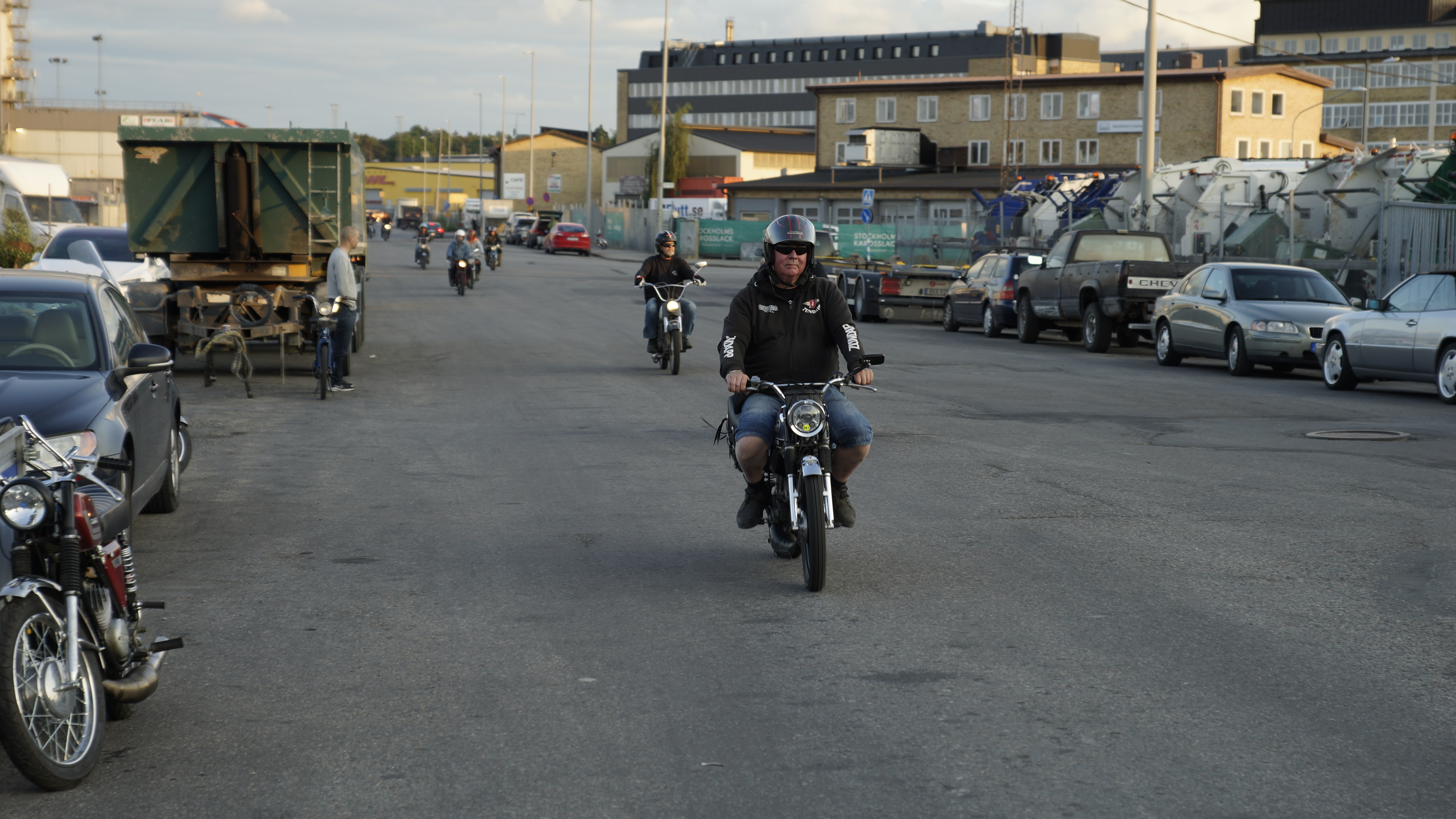 Allt var dock inte helt bra, för tyvärr så måste vi lägga in lite gnäll samtidigt. Vi gör allt vad vi kan för att bjuda på fin nattåkning i Stockholm och det här gör vi gratis, det är en hel del jobb innan det kan bli av och ge er en annorlunda moppeupplevelse. Vi har bett alla flera gånger att köra vettigt och ge fan i att fara runt som svin med risk för att det ska hända något eller att folk blir sura och trots det så var det en handfull som skitade ner stämningen. Vi fick gnäll av både seriösa mopedister och allmänhet, vi fick till och med en som blev stoppad av Polisen och det är INTE så vi vill ha det och det vet ni. Kör gärna fort, börna i korsningarna, kör lite på bakslangen, men ge fan i att fara runt på trottoarer och mot trafik och gående, kan man inte begära det? Sen är det bra om ni som har moppar som inte fanns med i listan över vilka moppar som var välkomna, skaffar er rätt moppar med rätt årsmodell till nästa år. Slut på gnället för i år och nästa år slipper vi gnälla, eller hur?