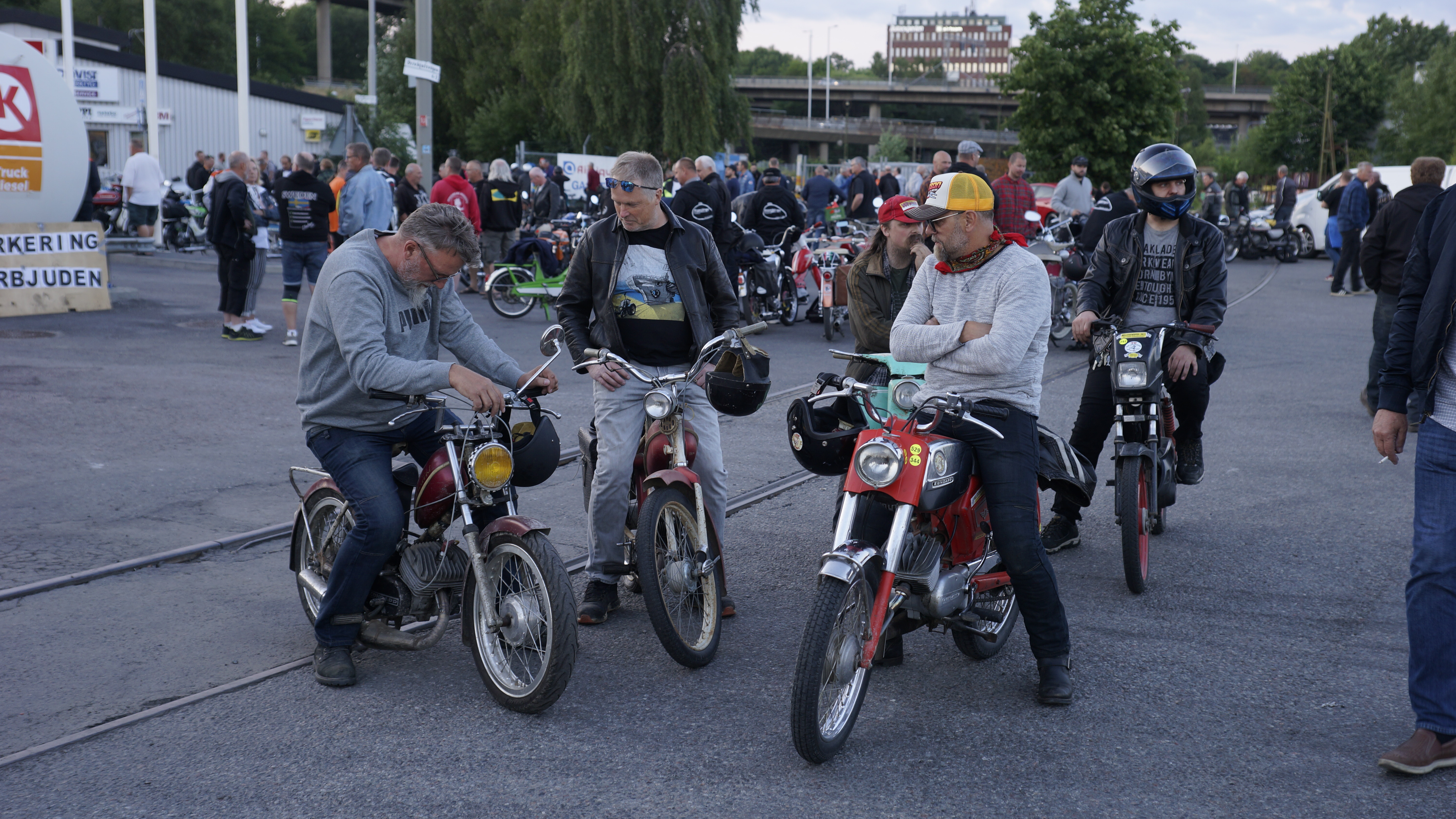• Trevligt att ha med er och vi förstår vad ni menar med röda trafikljus. Det är dock individen själv som tar beslutet om man vill köra mot rött, alla kör på eget ansvar då rundan är en öppen åkning där vi endast visar vägen, det är därför det är gratis att åka med. Men vi har tidigare pratat med Polismyndigheten kring det här och den enda gången man kan tillåta rödljuskörning är när man kör i kollon, alltså att man är ett långt sammanhållet led av åkare och det ansåg man att vår åkning kunde vara. Men tyvärr så hänger inte alla med och leden får glapp och de glappen fastnar vid trafikljusen. Men åter; det är ni som åkare som avgör, inte vi som visar vägen. Samtidigt har vi folk som trots att vi inte vill det, väljer att helt åsidosätta alla trafiklagar och det faller tyvärr på alla åkande oavsett om de flesta sköter sig. Att arrangera en organiserad åkning med alla tillstånd har visat sig vara omöjligt i Stockholm, för det skulle kräva en massa avspärrningar, väghänvisningar, samlingstillstånd på alla platser vi stannar, ibland följebil som går före och även inblandning av ordningspolisen. Så valet är att vi arrangerar en träff i Västberga på mark som tillåts av markägaren och att vi i Tårtan sedan tar oss en mopperunda i stan där de som vill åka med får göra det, fast som sagt; helt på eget ansvar inför regelverk och myndighetskrav, vi avsäger oss allt ansvar redan från början och det blir upp till den deltagande att själv ta sina beslut. Hoppas att det räcker som svar och välkomna nästa år 😉
