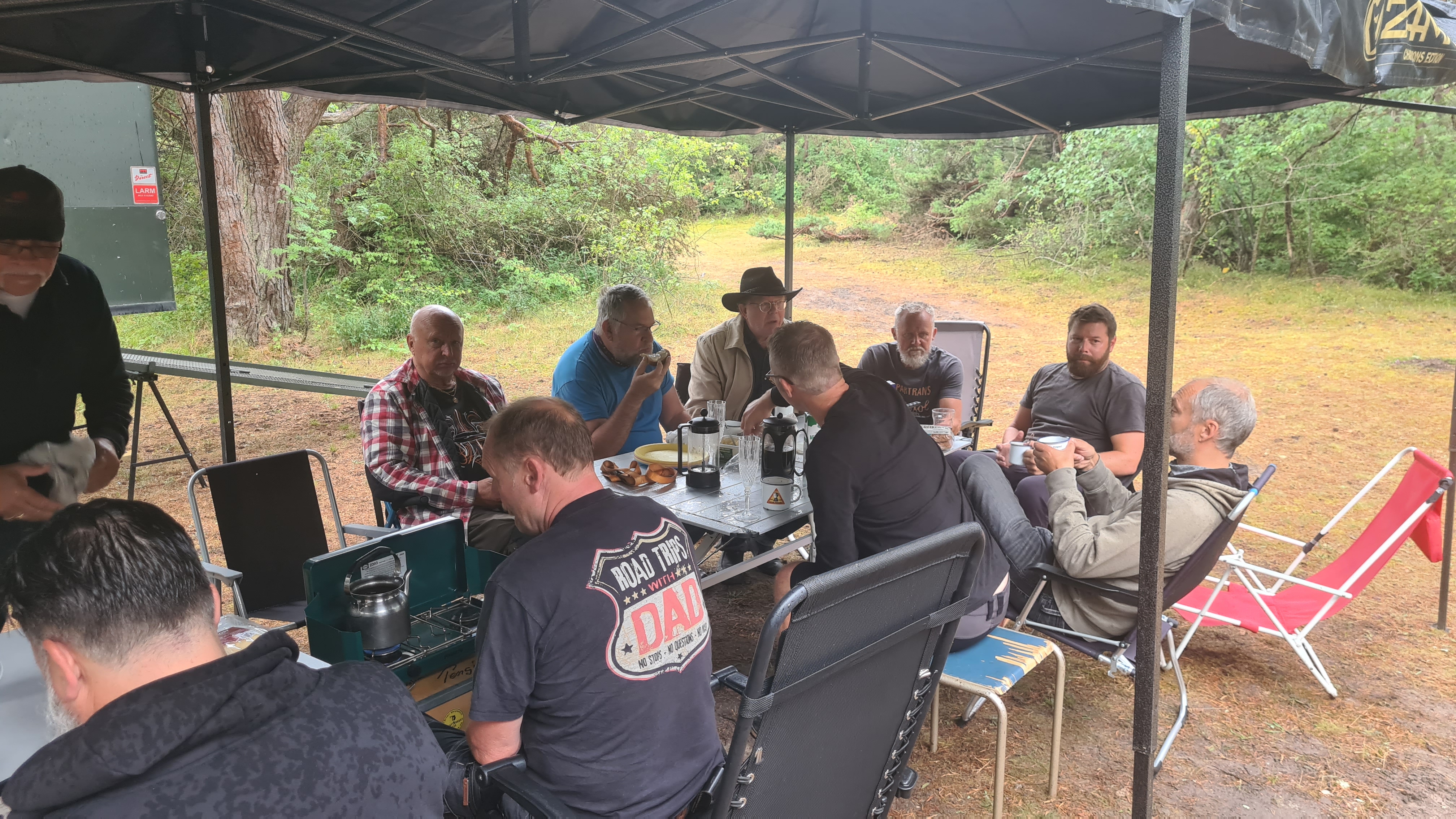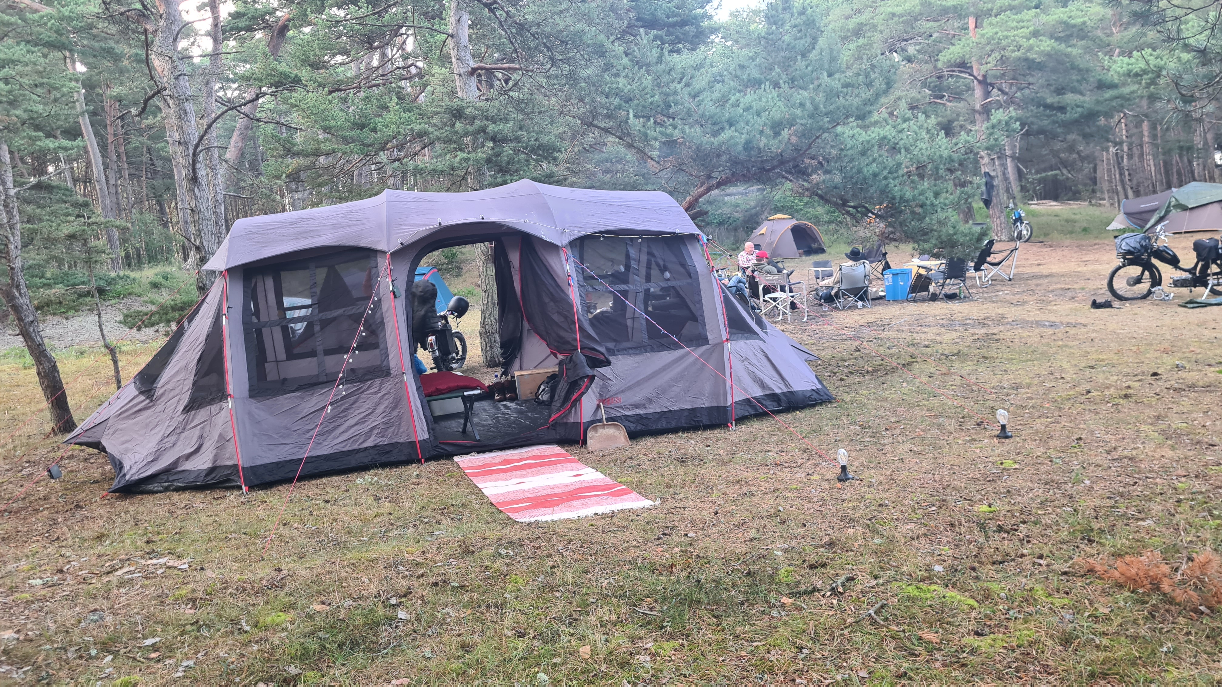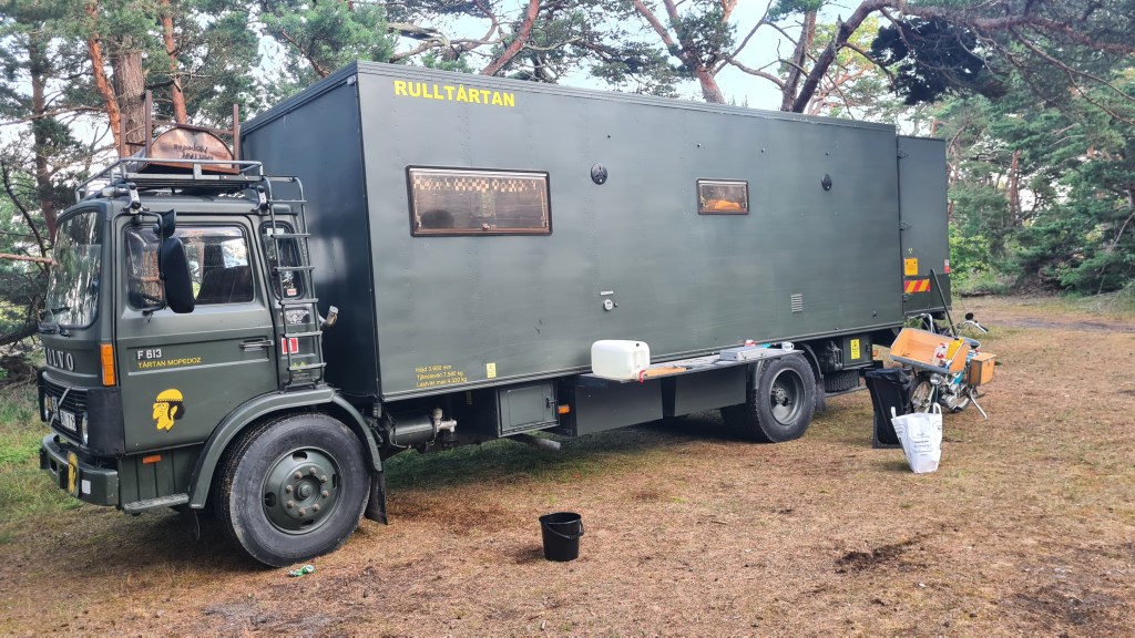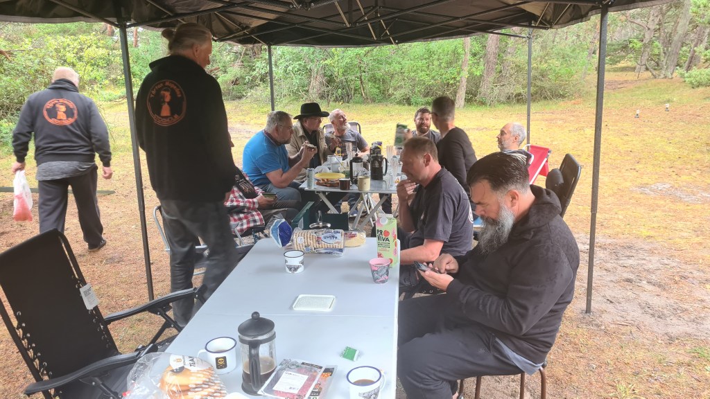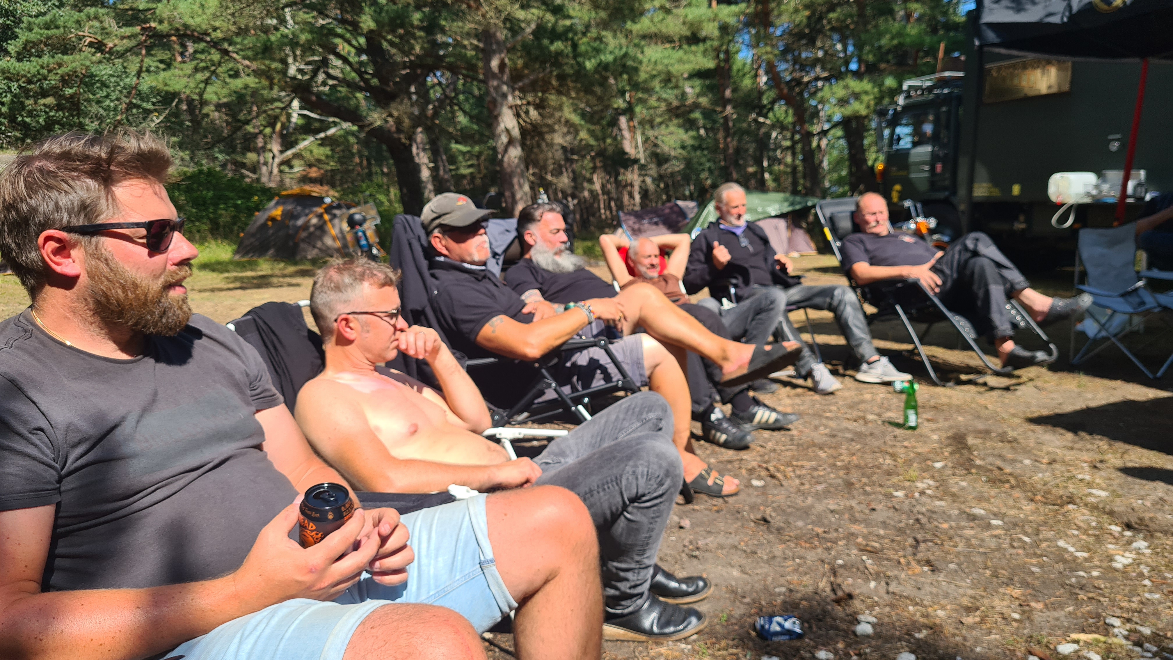I år regerade Zündapparna och SACHS:arna var fem till antalet och trots majoriteten av Zündapp så var det SACHS:arna som fick vika ner sig med ett par riktigt struliga knotor och ett par med lite småstrul. Dapparna gick dock inte heller helt felfritt, men går i år inte att jämföra mot SACHS:arnas strul, normalt brukar det vara 50-50 med problemen och i år typ 80-20. Bortsett från moppestrul så har GGMT förflutit bra och vädret har varit svalare än medeltalet men ändå rätt nederbördslöst, så när på någon liten uppmuntrande skur. Mycket av åkningen har i år gått utanför asfalten, vilket har varit äventyrligt för gamla gubbryggar, men jäkligt kul. Eftersom vädret bjussat på nederbörd innan vi kom dit så har eldningsrisken varit låg och den obligatoriska kvällsbrasan i vår grilltunna har funkat utan risk att bränna ner ön och när den har funkat så har den obligatoriska grillningarna mättat pojkarnas trinda magar. Naturligtvis så har det kollats på film på vår filmvägg på lastbilssidan, både gamla GGMT-filmer från tidigare år och gamla godingar som Kill Bill, men inget snuskigare. Det har besökts lite livemusik och trevligt folk samt en del butiker att kasta bort pengarna på, så vissa onödiga köp har genomförts och måste förklaras när man kommer hem. I år hade vi en nykomling och en gammal utomstående som är en tilltänkt ny medlem, båda är riktigt goa gubbar som funkar bra i flocken. Tuffar allt på som det ska så landar de flesta på fastlandet om några dagar, några blir kvar på ön som vanligt och de andra fortsätter sommaren med mer rumsrena och familjära uppdrag. För på GGMT så är det grabbsnack, grabbmat, grabbdricka, gubbfylla (man somnar efter 2 bärs alltså), lumparminnen igen och en del mjödlikt dricka, men tyvärr föredrar vissa rosa vin med total avsaknad av manlighet. Om det blir ett GGMT 2024? Nu kan vi ju inget annat och återvänder av gammal vana, eller har det blivit en ovana? Skitsamma, vi har kul, åker en massa moppe och njuter av lägerlivet, doften av sura strumpor och den ständigt smetiga hyn efter all blårök och kvällar vid lägerelden, så det är värt besväret att lägga ner energin på allt förarbete även nästa år och nästnästa år och åren efter det, och troligen tills vi inte får med oss rollatorerna längre och färdtjänsten vägrar att köra oss…..