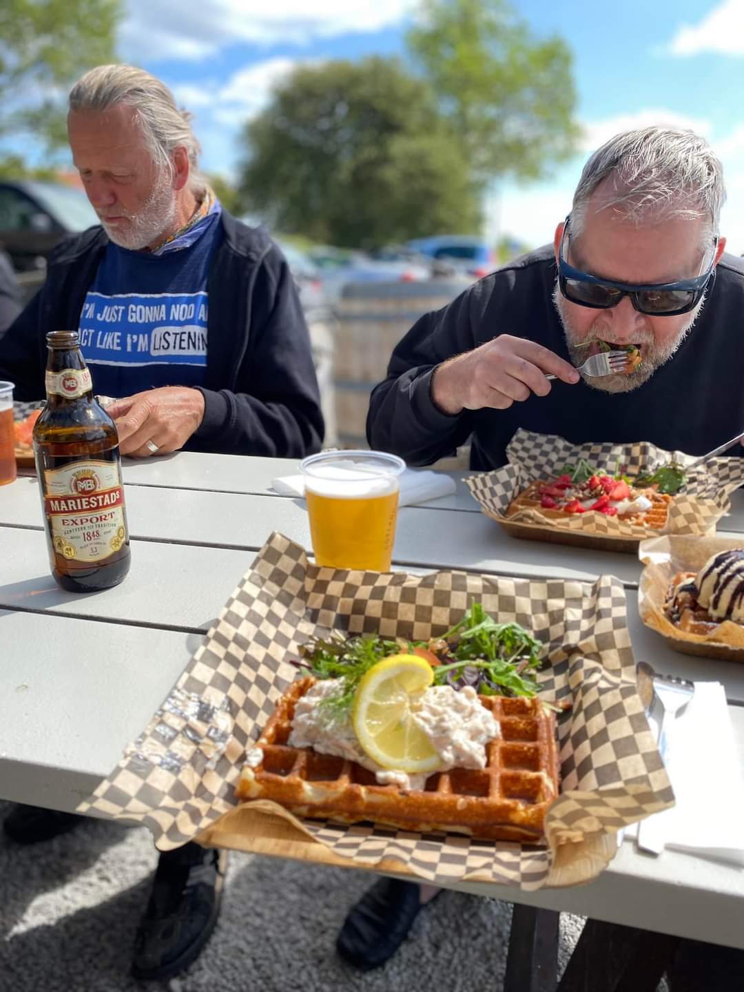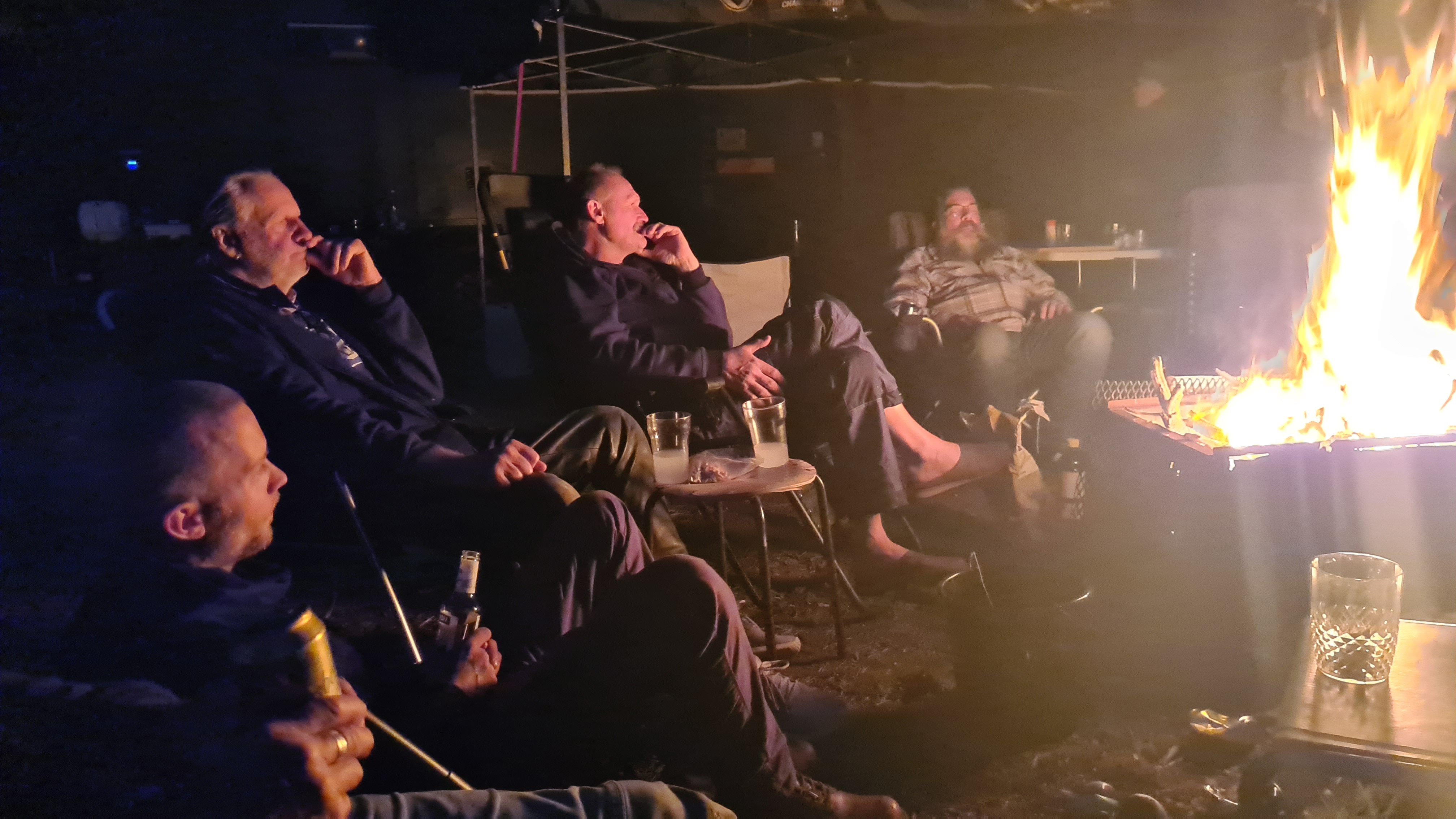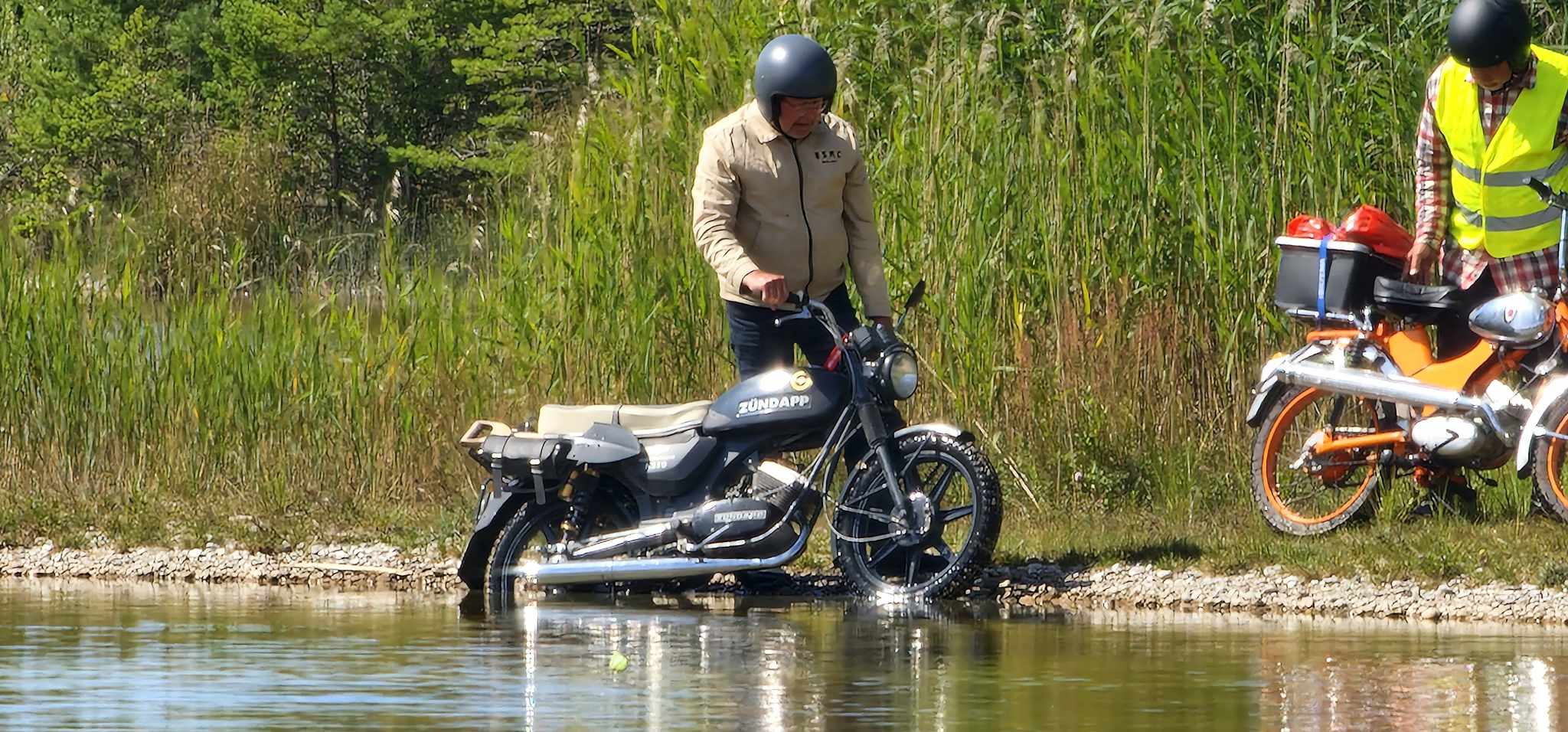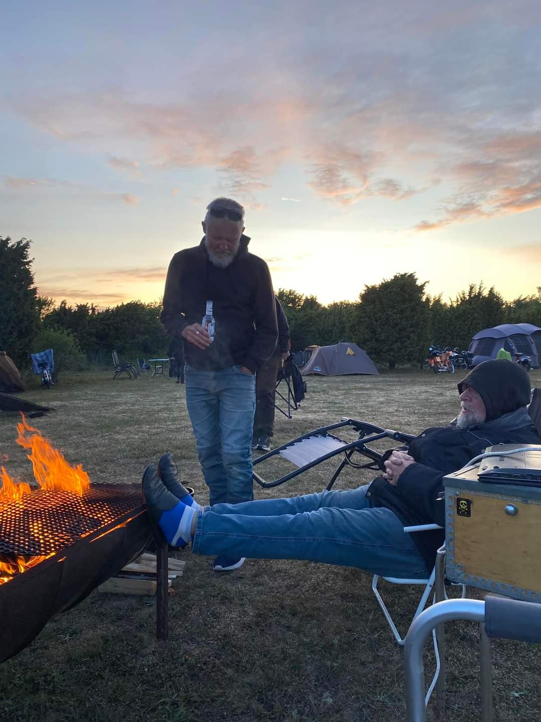 I år regerade Zündapparna och SACHS:arna var fem till antalet och trots majoriteten av Zündapp så var det SACHS:arna som fick vika ner sig med ett par riktigt struliga knotor och ett par med lite småstrul. Dapparna gick dock inte heller helt felfritt, men går i år inte att jämföra mot SACHS:arnas strul, normalt brukar det vara 50-50 med problemen och i år typ 80-20. Bortsett från moppestrul så har GGMT förflutit bra och vädret har varit svalare än medeltalet men ändå rätt nederbördslöst, så när på någon liten uppmuntrande skur. Mycket av åkningen har i år gått utanför asfalten, vilket har varit äventyrligt för gamla gubbryggar, men jäkligt kul. Eftersom vädret bjussat på nederbörd innan vi kom dit så har eldningsrisken varit låg och den obligatoriska kvällsbrasan i vår grilltunna har funkat utan risk att bränna ner ön och när den har funkat så har den obligatoriska grillningarna mättat pojkarnas trinda magar. Naturligtvis så har det kollats på film på vår filmvägg på lastbilssidan, både gamla GGMT-filmer från tidigare år och gamla godingar som Kill Bill, men inget snuskigare. Det har besökts lite livemusik och trevligt folk samt en del butiker att kasta bort pengarna på, så vissa onödiga köp har genomförts och måste förklaras när man kommer hem. I år hade vi en nykomling och en gammal utomstående som är en tilltänkt ny medlem, båda är riktigt goa gubbar som funkar bra i flocken. Tuffar allt på som det ska så landar de flesta på fastlandet om några dagar, några blir kvar på ön som vanligt och de andra fortsätter sommaren med mer rumsrena och familjära uppdrag. För på GGMT så är det grabbsnack, grabbmat, grabbdricka, gubbfylla (man somnar efter 2 bärs alltså), lumparminnen igen och en del mjödlikt dricka, men tyvärr föredrar vissa rosa vin med total avsaknad av manlighet. Om det blir ett GGMT 2024? Nu kan vi ju inget annat och återvänder av gammal vana, eller har det blivit en ovana? Skitsamma, vi har kul, åker en massa moppe och njuter av lägerlivet, doften av sura strumpor och den ständigt smetiga hyn efter all blårök och kvällar vid lägerelden, så det är värt besväret att lägga ner energin på allt förarbete även nästa år och nästnästa år och åren efter det, och troligen tills vi inte får med oss rollatorerna längre och färdtjänsten vägrar att köra oss…..