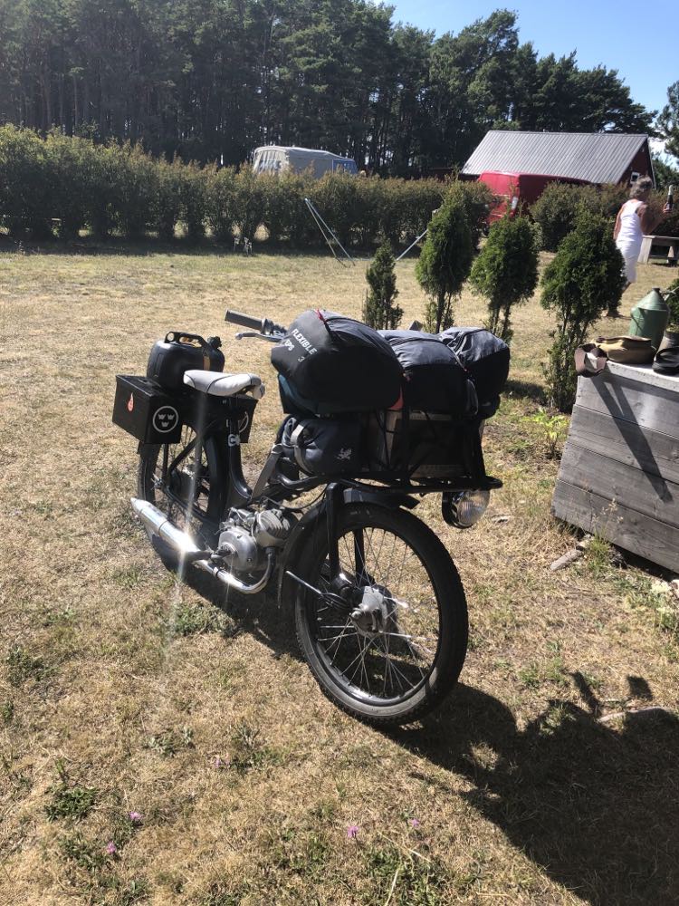 När vi lägger ut det här inlägget så är den 21:a Gotland Grand Moppe Tour i sitt slutskede och snart helt avslutad för i år, men mycket går på rutin efter 21 års resande på Gotland. Årets resa inleddes av 15 moppar och lika många gamla pojkar som i år gav sig iväg söderut på Gotland, vartannat norrut och vartannat söderut. Med i hasorna går som vanligt klubbens lastbil Rulltårtan med all packning, i år rattad av proffset Flozzy med mångårig vana av lastbilsrattande.