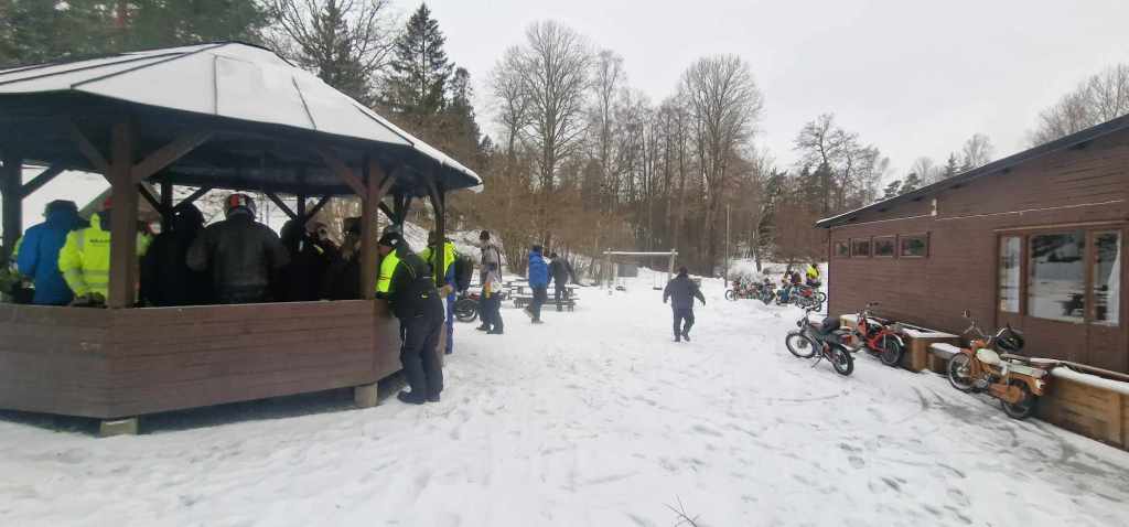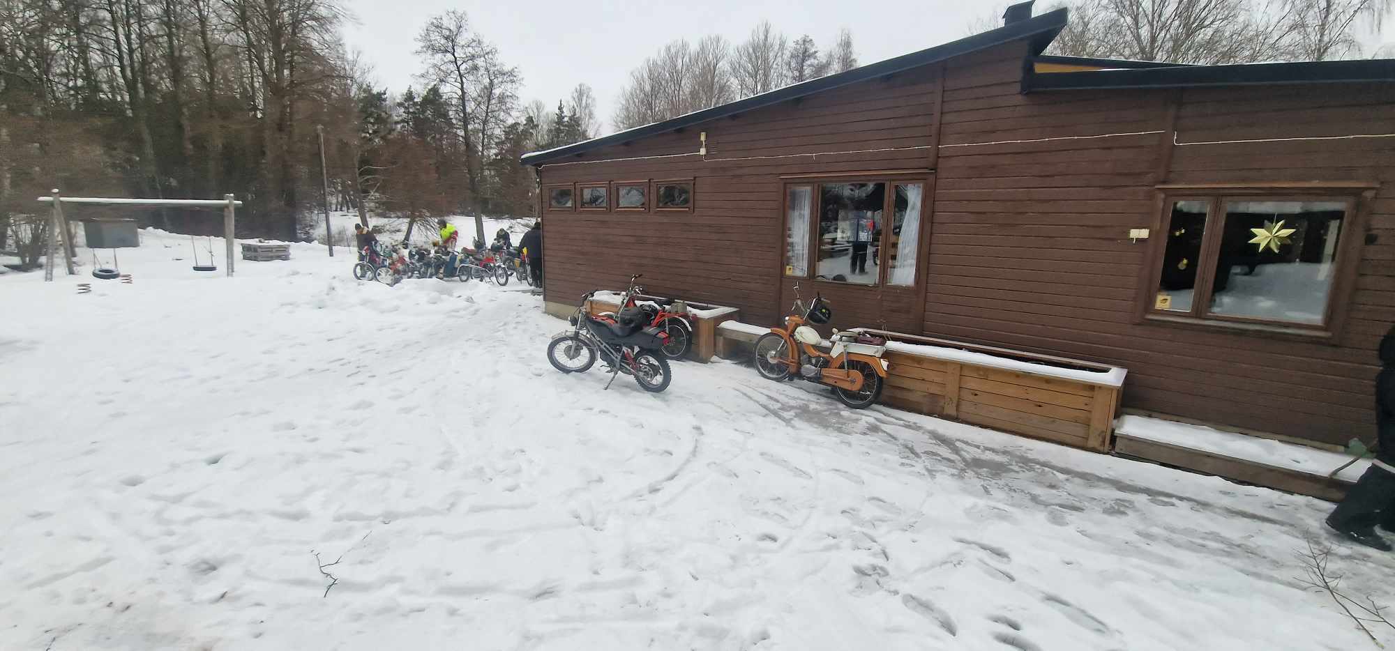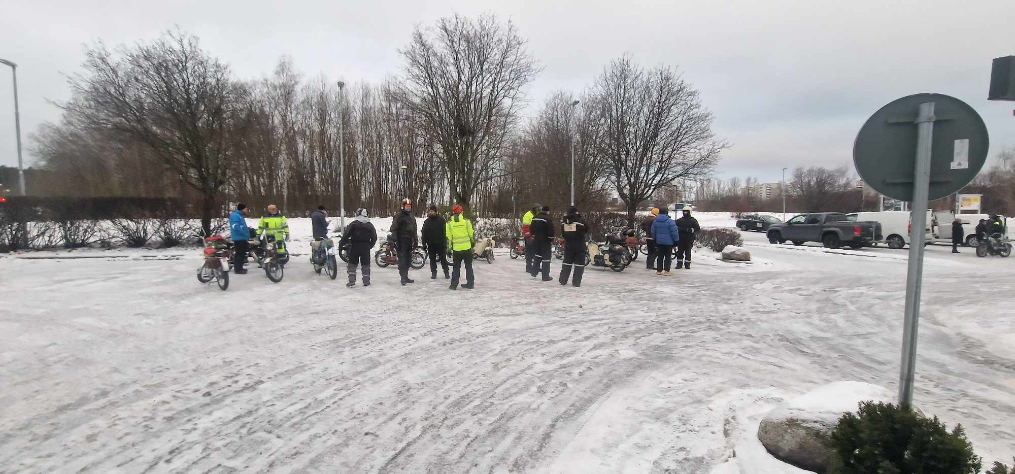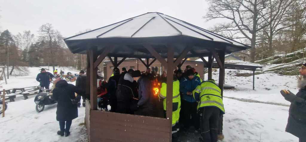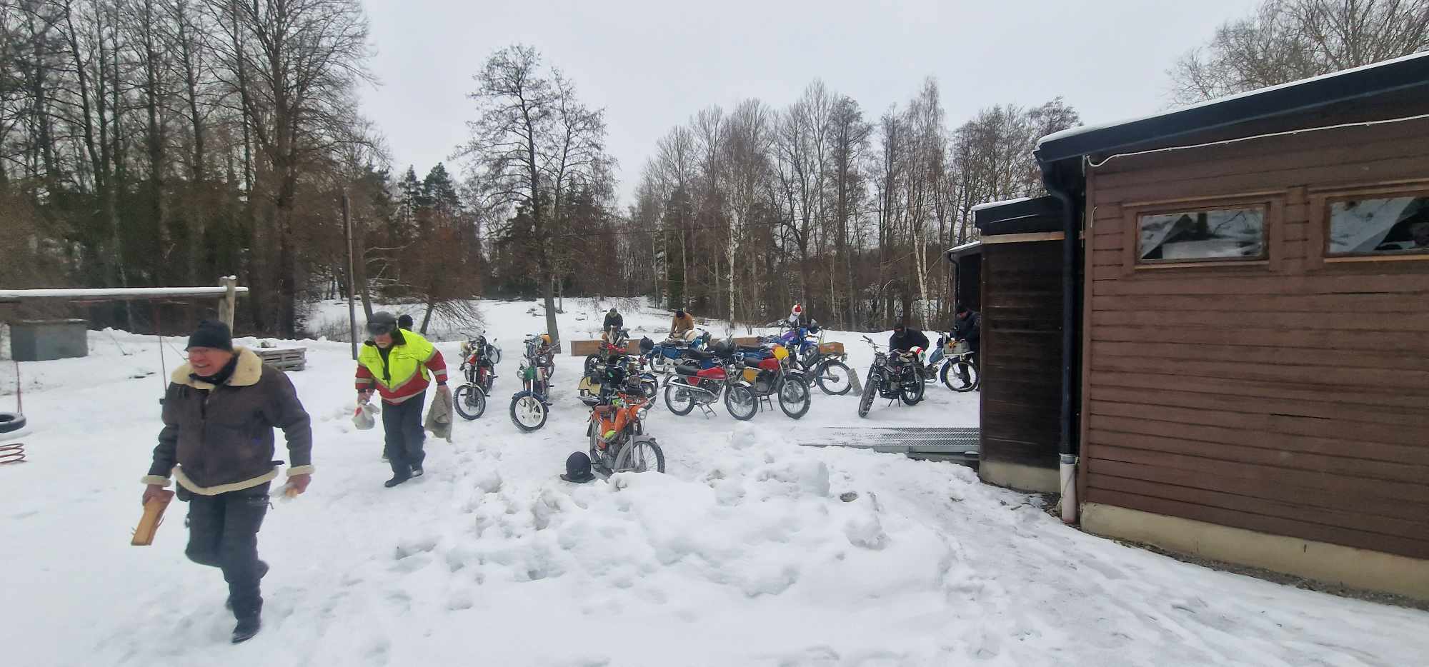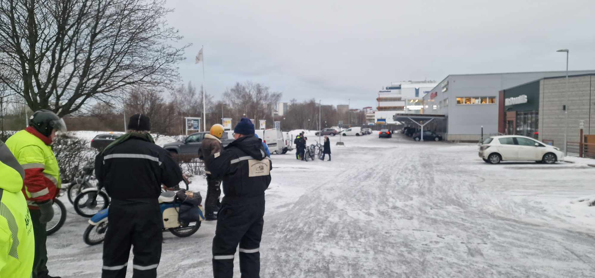 Traditionsenligt så kördes det ju en sista runda för året i det vi kallar Nyårsrundan, det har vi gjort sedan 2002. Två minusgrader och rå kyla samt jäkligt halt fick bli vädret för årets sista runda. Ett 35-tal moppar med förare trotsade vädret och samlades vid Mc Donalds på Årstafältet för avfärd på en runda, runt tre mil lång. Rundan gick in mot staden, korsade Södermalm och vidare ut på Kvarnholmen, Nacka, Hellasgården, Älta och fram mot Flatenbadet. Flatensjön rundades och vid Orhems Scoutstuga så brann grillbrasan när alla var framme. Det blev lite klotningar då underlaget inte var speciellt strävt, om man säger så, men inga lemmar blev skadade och även mopparna klarade sig galant. Efter grillningen så önskade alla lycka och välgång för det stundande året, sen drog alla tillbaka hemåt för att fira resten av dagen med sina respektive och önska Gott Nytt År!
