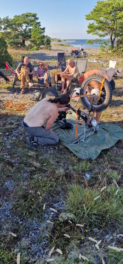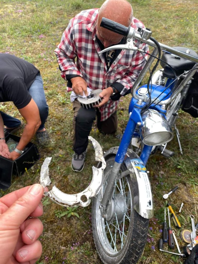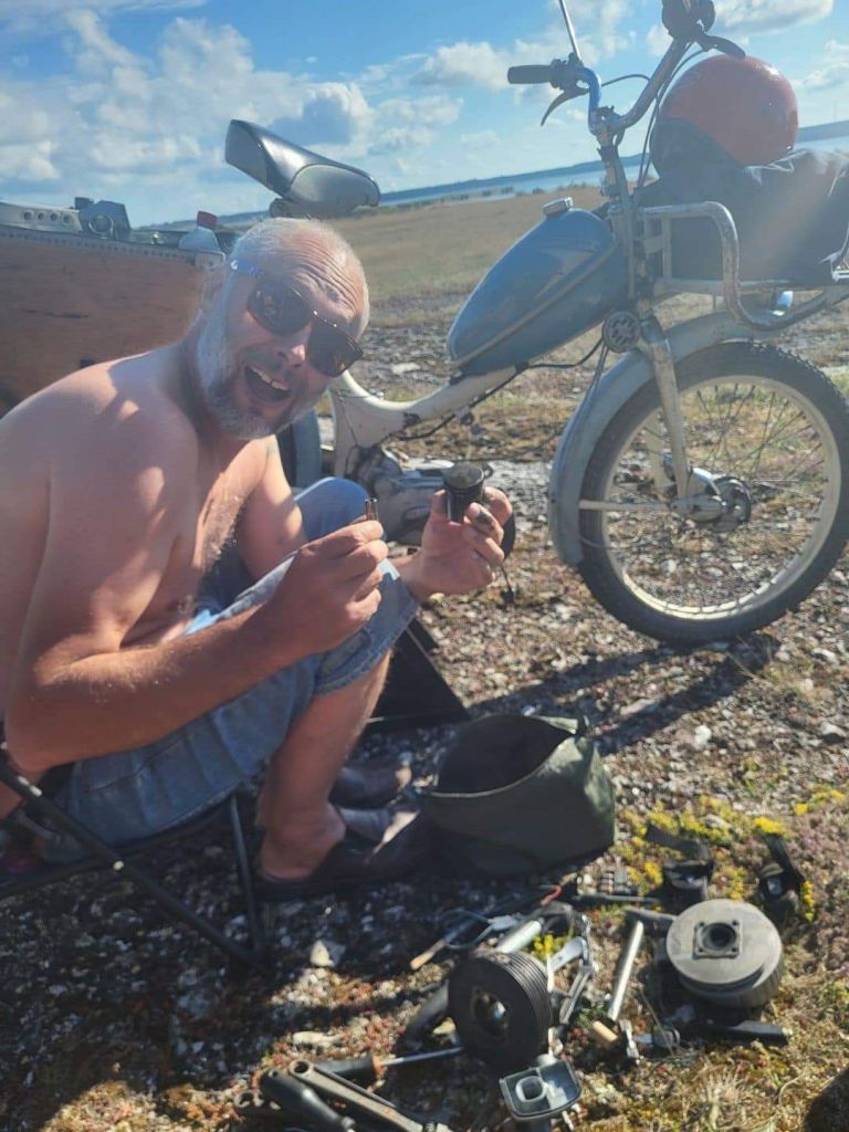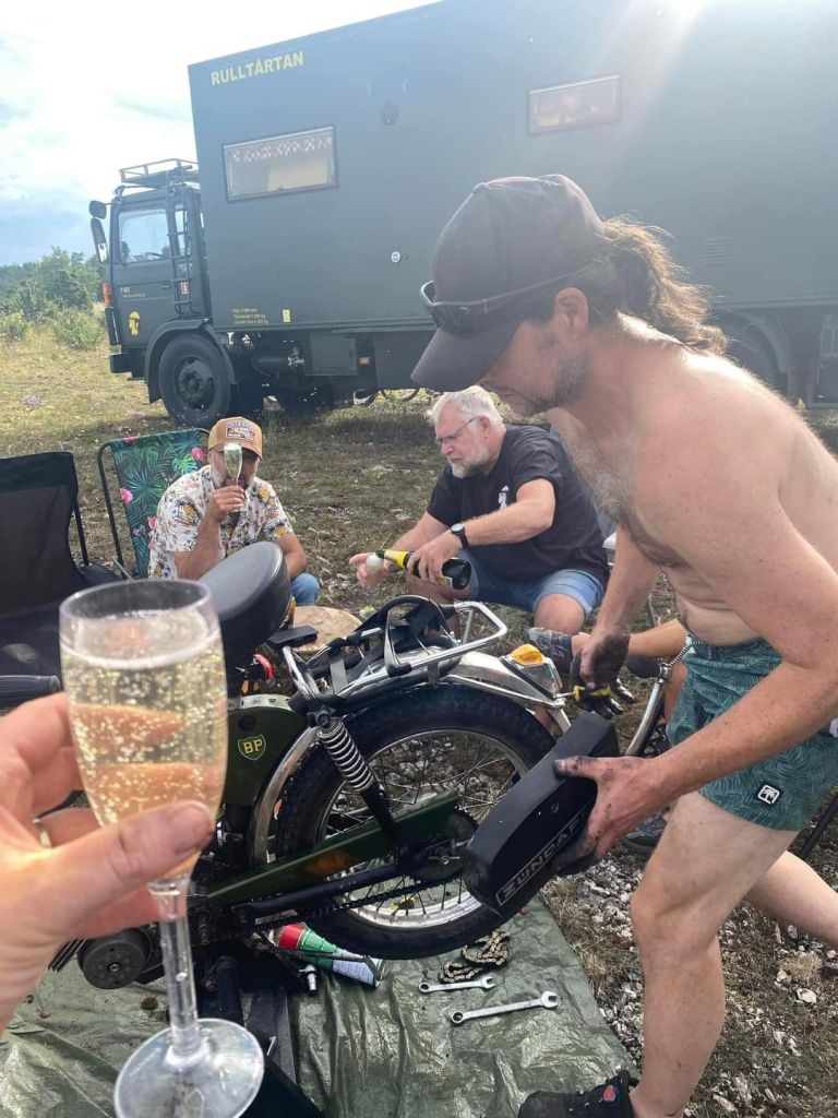 Det blir ett värmenyp på en SACHS, kolv- och cylinderhaveri på två Zündappar, en kedja tappas på vägen och sen följer små mysiga småstrul. Ingen blir sur för det här, nä det mesta fixas i vår rullande verkstad, Rulltårtan, som vanligt hänger med och transporterar inte enbart verkstan utan även all packning och käk, vatten, laddstation, elverk, komplett kök och en rad annat vi man normalt inte tar med på en moppesemester, men vi gör det. Haverier i alla dess former är uppmuntrande sysselsättning och engagerar alla, för man kan ju inte sitta i solnedgången och ta en bärs hela tiden, eller? Nu laddar vi om och sticker över även 2025 för det vi tycker är den ultimata semestern på moppe.
